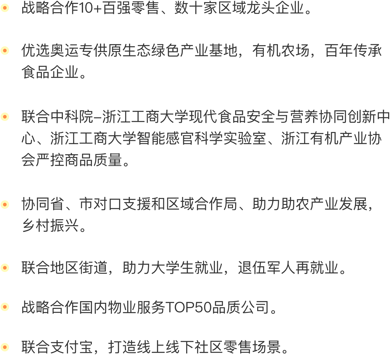 开展基于社区生活场景的商业运营服务,构建安全健康的社区生活服务平台,为社区居民提供有品质的商品、有温度的服务,让社区成为美好生活方式的载体。让社区商业更有活力,促进社区消费,增加社区就业机会,和侨鑫、汇景、南都、绿城、合景等物业公司合作,共创社区服务新模式。