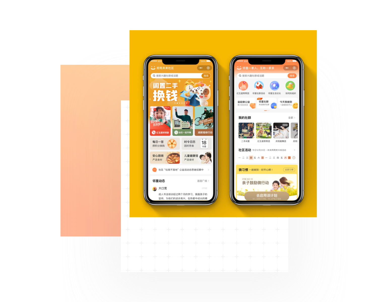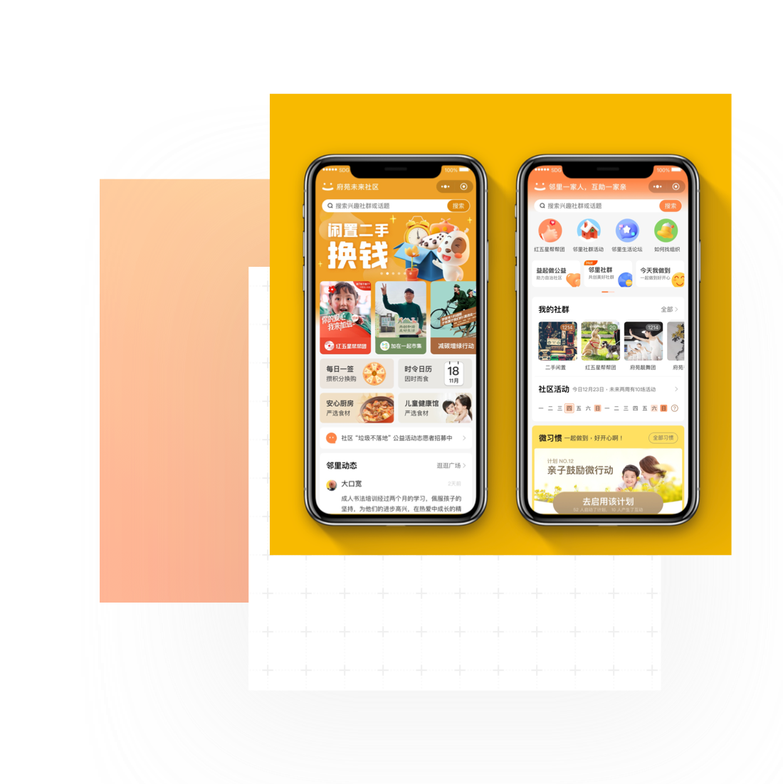 应用端便民服务、政务党建、邻里活动、志愿互助、社区资讯社区商城等功能;